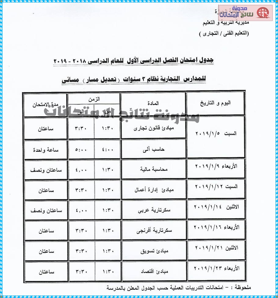 دبلوم تجارة جدول امتحانات الصف الثالث الثانوي التجاري 2020 شعبة إدارة