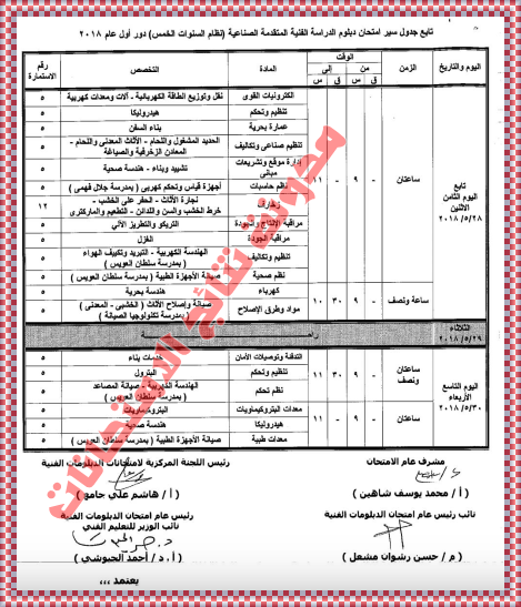 جدول امتحانات شهادة الدبلوم الفنى الصناعى بالصور 2020 جداول