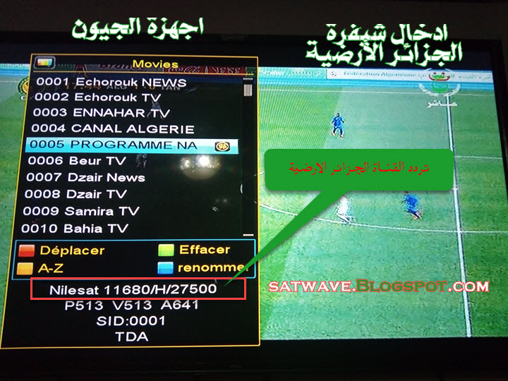 طريقة ادخال شيفرة قناة الجزائرية الارضية في النيل سات على كل