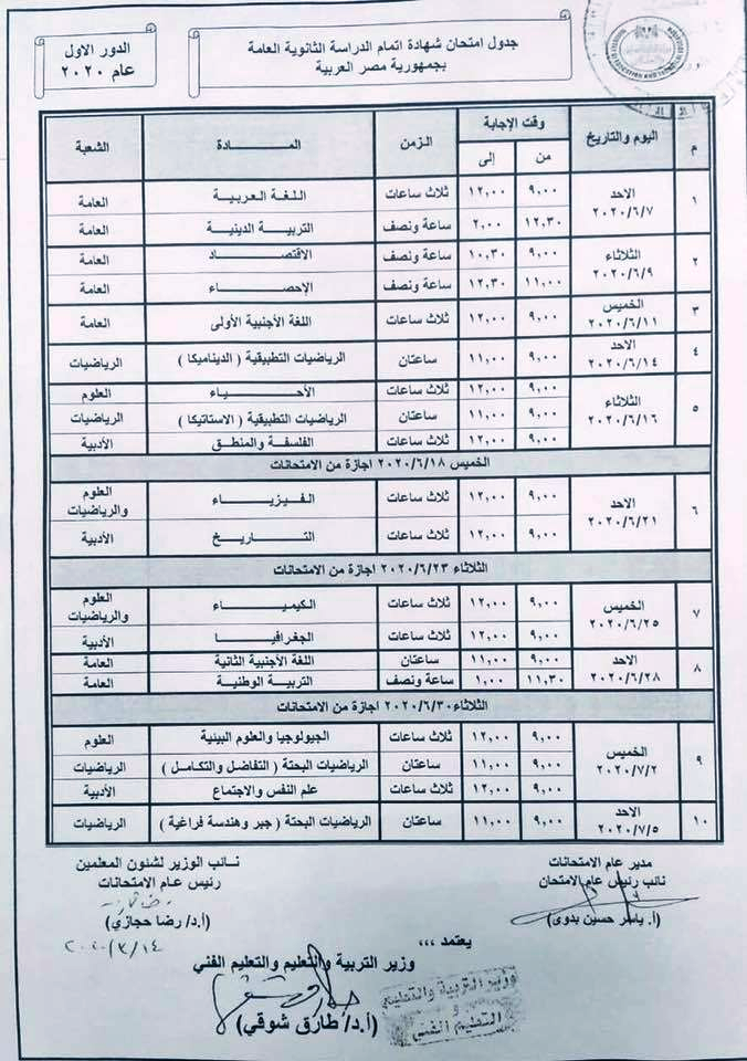 جدول امتحانات الثانوية العامة 2020 الجديد لم يسبق له مثيل الصور