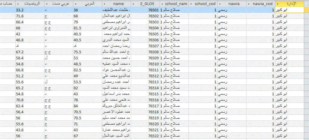 نتيجة الصف السادس الابتدائي لطلاب المدرسة مدرسة عمر الفاروق