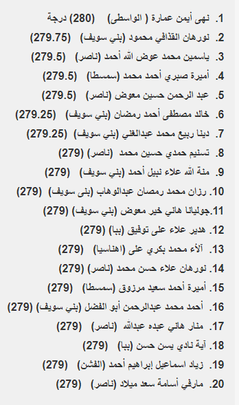 أسماء أوائل الشهادة الإعدادية في بنى سويف 2018 موقع السادات التعليمى