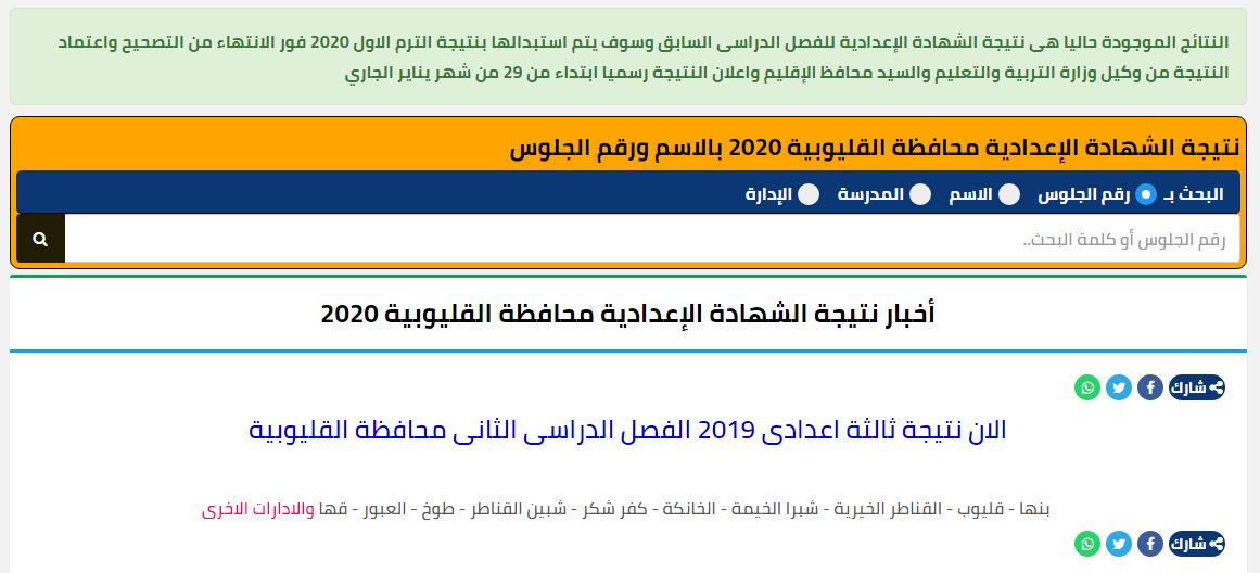 نتيجة الشهادة الإعدادية محافظة القليوبية بالاسم أو رقم الجلوس 2020