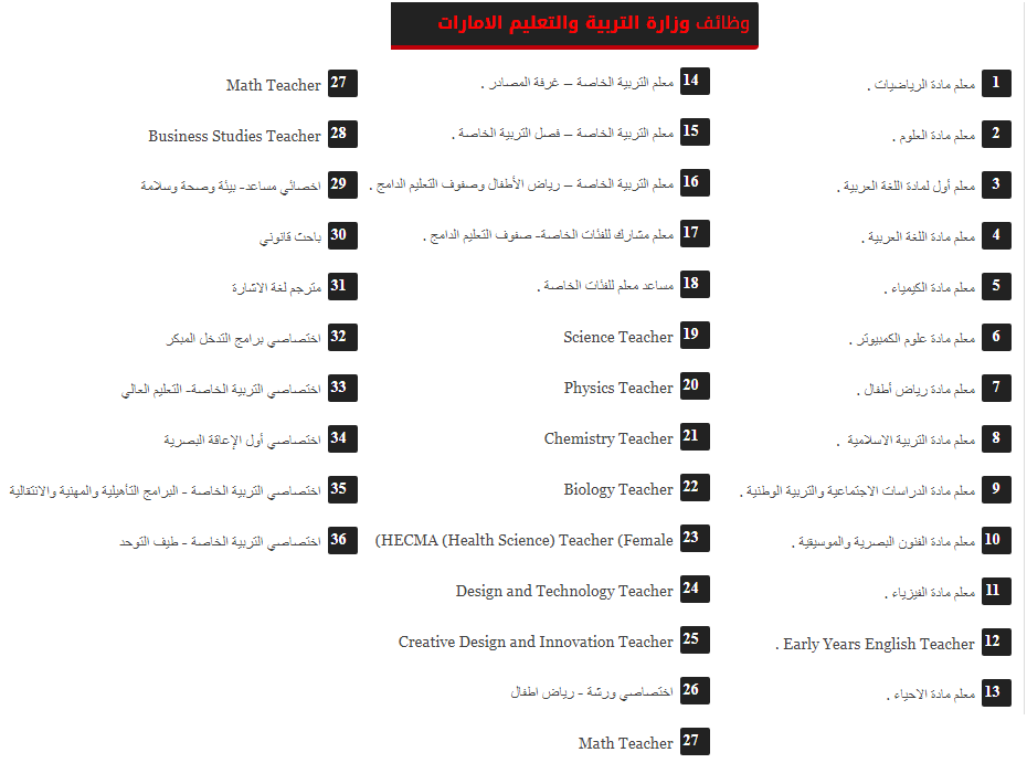 مطلوب 78 تخصص للعمل بوزارة التربية والتعليم فى الامارات وشرح طريقة