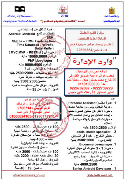 وظائف وزارة القوى العاملة اليوم